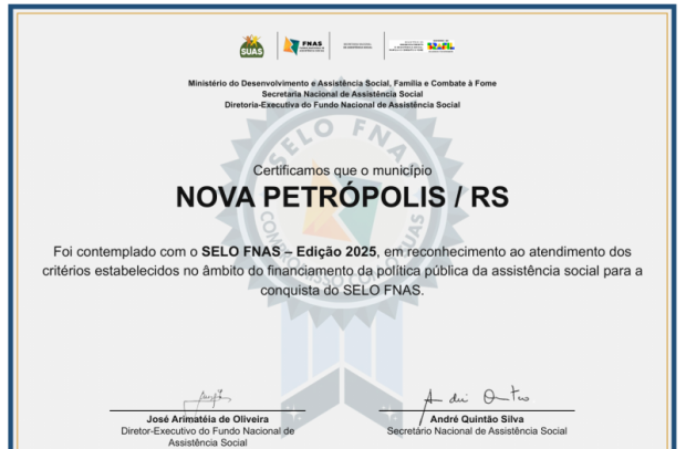Home NotíciasNova PetrópolisNova Petrópolis recebe o Selo FNAS 2025 por excelência na gestão da Assistência Social