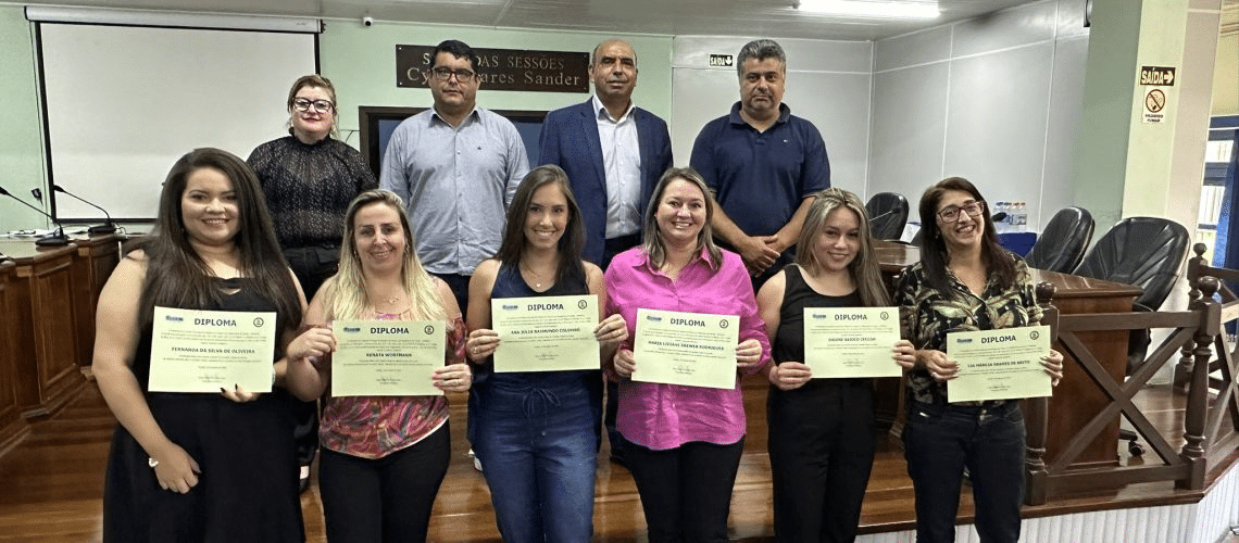 Na manhã desta quarta-feira (10.1), foram diplomadas e empossadas as conselheiras tutelares de Canela para a gestão 2024-2027. A solenidade aconteceu na Câmara Municipal de Vereadores e contou com a presença do prefeito em exercício Jefferson de Oliveira, do presidente e vice do Conselho Municipal dos Direitos da Criança e do Adolescente de Canela (COMDICA), Paulo Terra e Valquíria Dias, do secretário interino de Assistência, Joãozinho Silveira, dos vereadores Jerônimo Terra Rolim, Emília Fulcher e secretário adjunto de Educação, Roberto Oliveira.