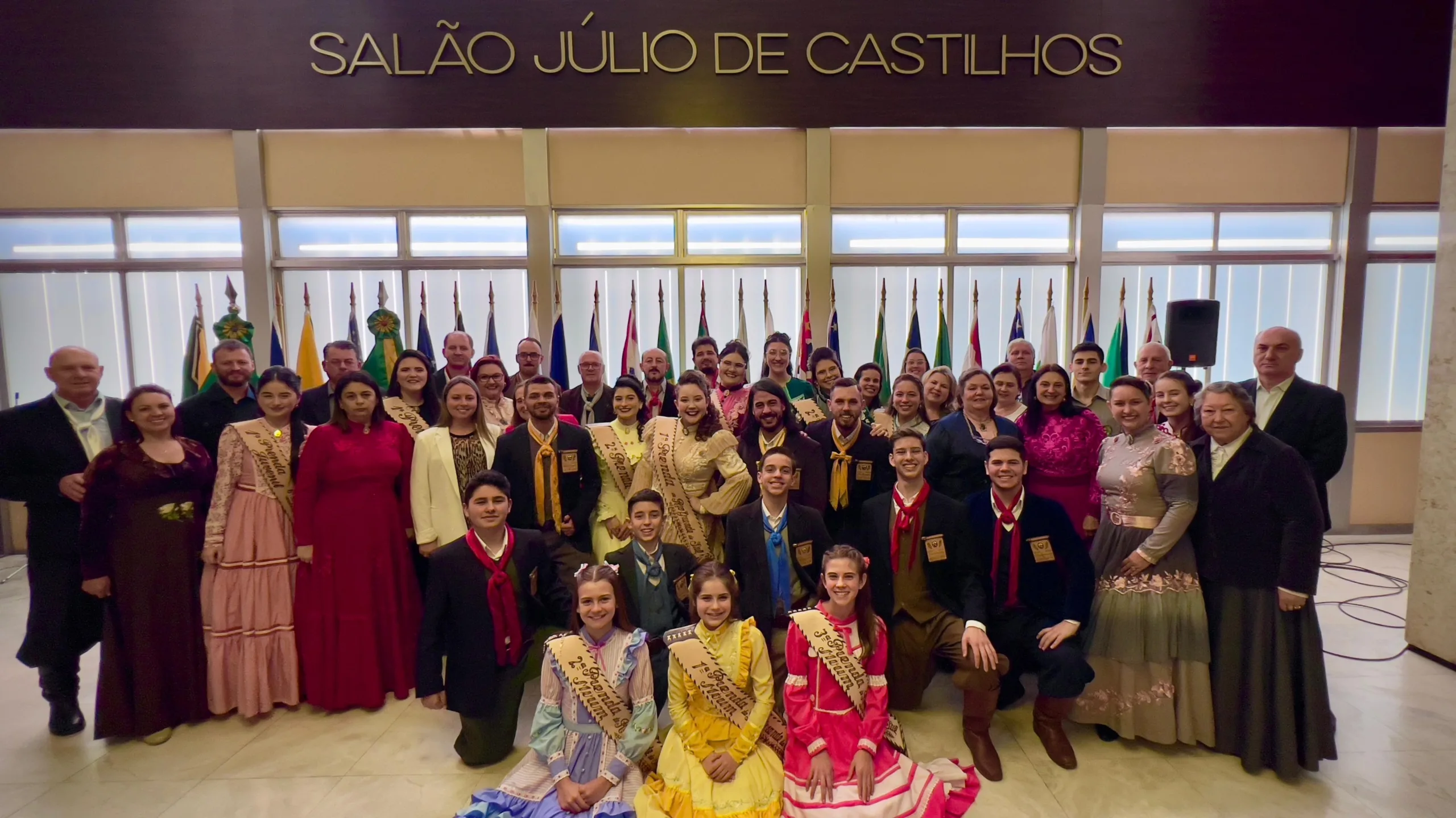 A Assembleia Legislativa do Rio Grande do Sul realizou uma cerimônia especial na tarde desta terça-feira (03/09), no Salão Júlio de Castilhos, para outorga da Medalha da 56ª Legislatura e entrega de diplomas às Prendas e Peões do Estado eleitos para a gestão 2024/2025. A iniciativa, liderada pelo deputado Luciano Silveira (MDB), teve como objetivo reconhecer o empenho dos jovens em preservar e promover a cultura tradicionalista gaúcha por meio do Movimento Tradicionalista Gaúcho (MTG).