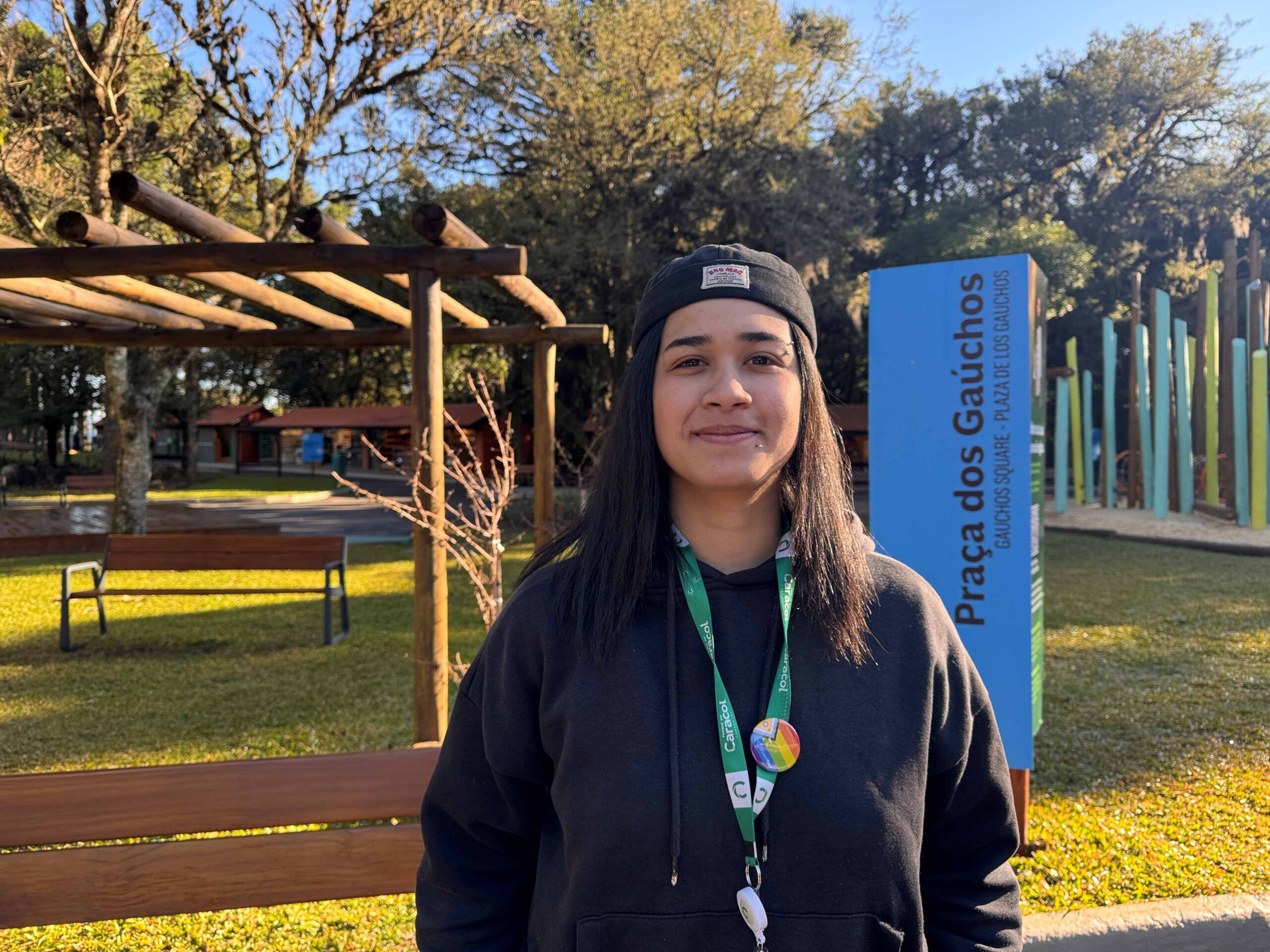 Ex-aluna da Escola Machado de Assis, Larissa de Souza Carvalho de Lima hoje é jovem aprendiz do setor de Gente e Gestão do parque e recebeu os pequenos visitantes. “É muito gratificante estar recebendo eles sendo uma profissional aqui no parque hoje. Espero que eles aproveitem muito a trajetória deles e vejam o quão importante é a escola”, contou.