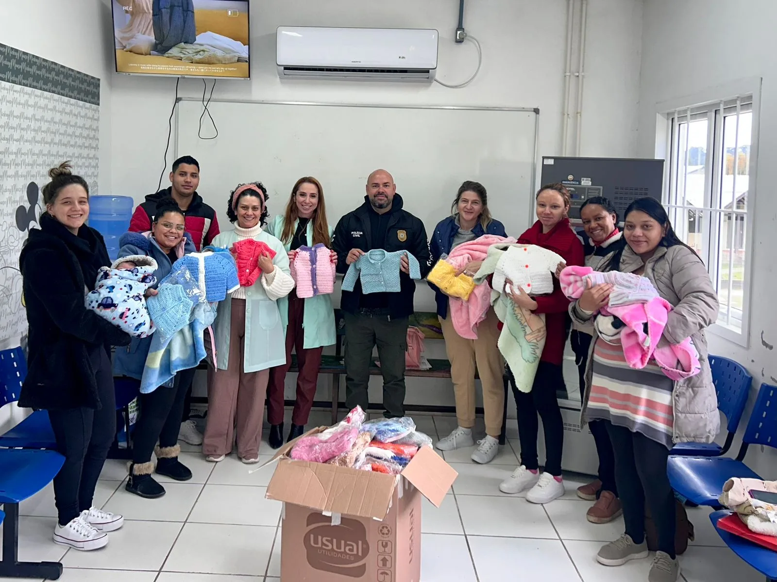 Pelo sexto ano consecutivo, a Polícia Civil, através do delegado Vladimir Medeiros, numa parceria com a Secretaria de Saúde de Canela, realiza a doação de casacos de tricô para os recém-nascidos, atendidos nas Unidades de Saúde de Canela.