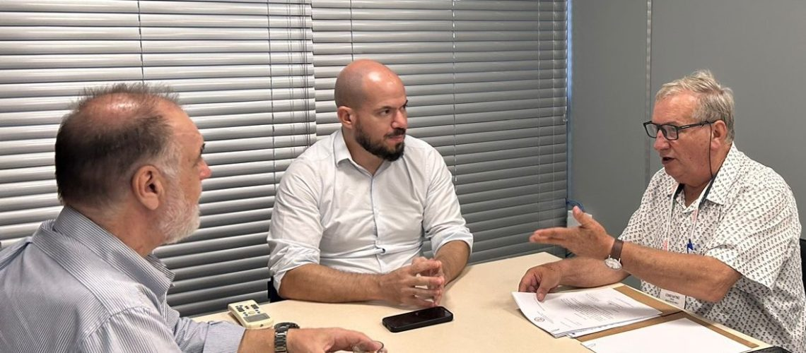 O prefeito Constantino Orsolin, acompanhado pelo deputado estadual Carlos Burigo, reuniu-se em audiência na quarta-feira (20.3) com o Secretário de Parcerias e Concessões, Pedro Capeluppi. O foco principal da discussão foi o pedido de extensão do prazo para a execução do projeto do Parque do Palácio, que inclui a construção de um Centro de Convenções e Congressos no local.
