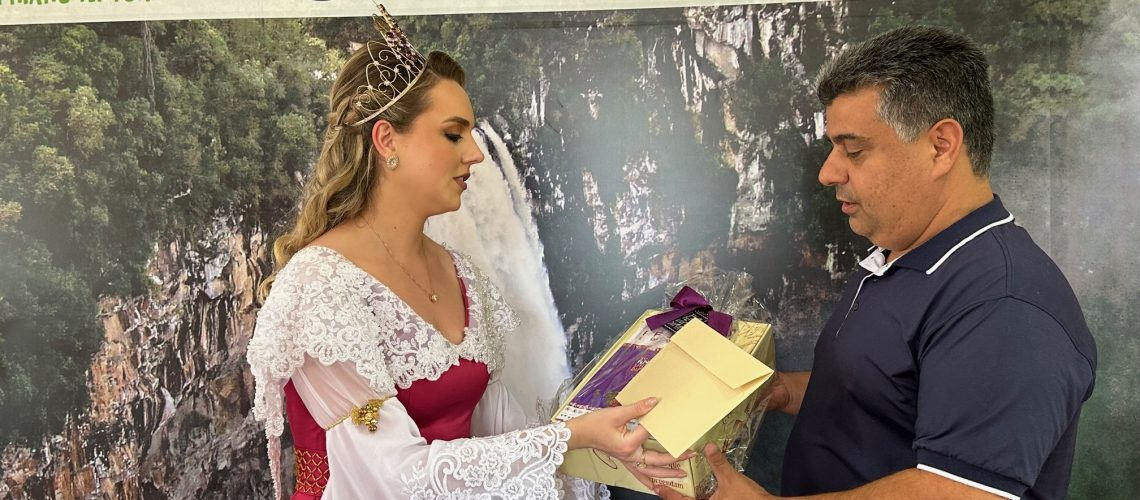 Durante o encontro as soberanas falaram da festa que será realizada de 22 de fevereiro a 10 de março, no Parque da Vindima Eloy Kunz, em Flores da Cunha, com o tema “O Centenário da Colheita”, em referência aos 100 anos de emancipação política do município.