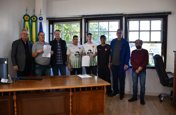 A assinatura do Termo de Fomento ocorreu no Gabinete Oficial, onde o prefeito Daniel Carlos Michaelsen recebeu o presidente do clube, Irineu Schwantes; o vice-presidente e responsável pela escolinha, Paulo Brandt; o professor Arlindo de Freitas e os jovens atletas Davi Rafael dos Santos e Kauê Aguiar de Freitas.