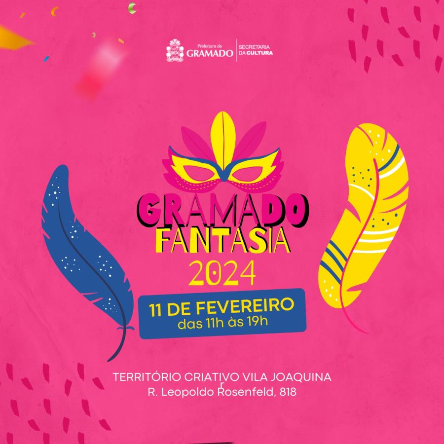 A Prefeitura de Gramado, por meio da Secretaria da Cultura, trabalha na edição 2024 do Gramado Fantasia, tradicional festa carnavalesca da cidade. A festividade, que acontecerá no domingo, 11 de fevereiro, seguirá o padrão que foi implementado pela primeira vez em 2023, com um evento diurno, realizado no Território Criativo Vila Joaquina, e regado a muita música, animação e cultura popular.