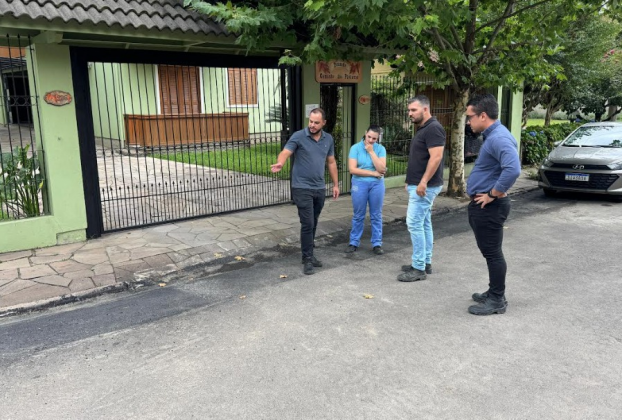 A primeira parada foi no trecho entre a Rua Emílio Leobet e a Av. Borges de Medeiros, onde atualmente são realizadas obras de interligação da adutora. “Temos que priorizar e agilizar os serviços aqui nesta região devido ao grande fluxo de veículos, mantendo a qualidade e o padrão de asfaltamento que é característica de Gramado”, cobrou o secretário Willian Camilo.