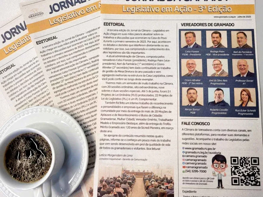 Já está disponível a 3ª edição do Jornal da Câmara de Vereadores – Legislativo em Ação. O material traz um resumo das ações da Casa do Povo no primeiro semestre de 2023. De acordo com a gerente de Comunicação da Casa, Letícia Morgenstern de Lima, o jornal visa levar até a comunidade as principais informações dos projetos e trabalhos realizados no Legislativo como uma forma de prestação de contas e transparência dos atos públicos que foram executados na Câmara nos primeiros seis meses do ano.
