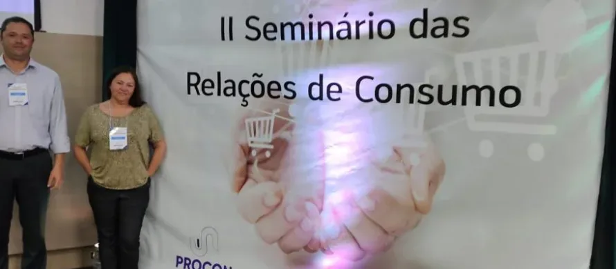 Deisi Stange, coordenadora do Procon de Canela e o fiscal Paulo Fabiano Feller participaram do seminário que abordou temas como Crimes Cibernéticos: prevenção e procedimentos úteis no contexto atual, Golpes Financeiros, Novas tecnologias e controle de comportamento do consumidor, Super Endividamento, A atuação da Defensoria Pública junto ao consumidor vulnerável, O ônus da prova nos empréstimos bancários a luz do CDC, Atuação do MP nos casos de práticas abusivas de empréstimo consignado e a política nacional de defesa do consumidor.