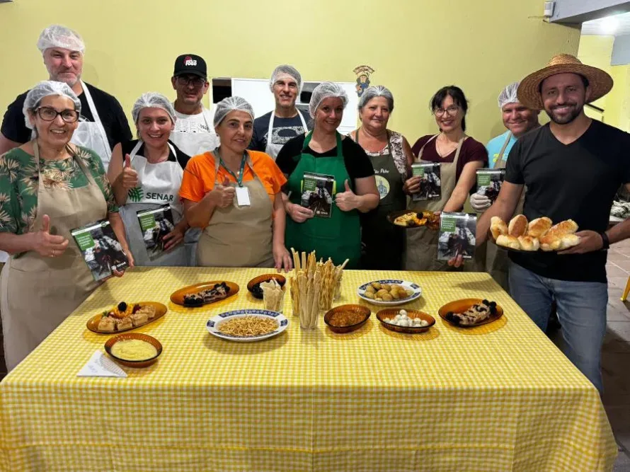 Participantes do curso de “Turismo Rural: Alimentação, Hospedagem e Acolhida”, oferecido pela Prefeitura de Gramado e Senar com apoio do Sindicato Rural de Canela, realizaram nesta quinta-feira (07) a capacitação “Os Segredos da Culinária Rural”. Os alunos produziram cuca de amora, pão de fermentação lenta, geleia de amora, pão de batata-doce, pão de beijo, geleia de laranja e hortelã, sorvete e grissinis. O curso está sendo realizado na Linha Furna e participam produtores da localidade e arredores.