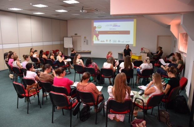 As formações do Programa de Formação Leitura e Escrita são ministradas mensalmente e têm como intuito garantir que as crianças tenham experiências variadas com as diversas linguagens e reconheçam o mundo no qual estão inseridas.