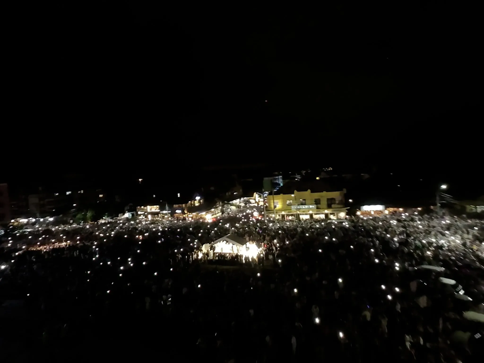 Uma multidão acompanhou, na madrugada desta segunda-feira (1º), a chegada de 2024 em frente a Catedral de Pedra, um dos principais cartões postais de Canela.