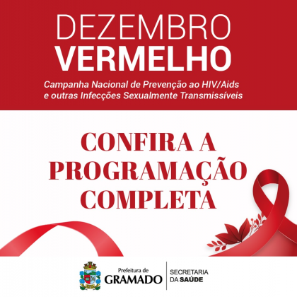 O Dezembro Vermelho é uma campanha que marca a luta contra o vírus HIV, a Aids e outras Infecções Sexualmente Transmissíveis, chamando a atenção para a prevenção, a assistência e a proteção dos direitos das pessoas infectadas. A campanha é constituída por um conjunto de atividades e mobilizações. Em Gramado, a Secretaria da Saúde preparou uma ampla programação para discutir o tema. Confira: