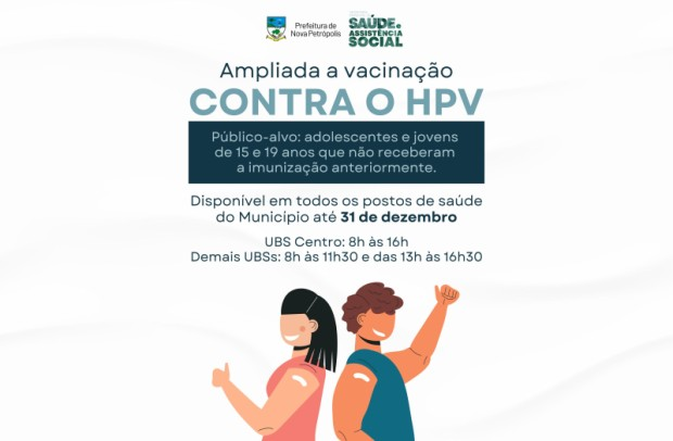 O Ministério da Saúde, por meio do Departamento do Programa Nacional de Imunizações (DPNI) e da Coordenação-Geral de Incorporação Científica e Imunização (CGICI), informa a ampliação da estratégia de resgate vacinal de adolescentes e jovens de 15 a 19 anos não vacinados contra o Papilomavírus Humano (HPV) até 31 de dezembro de 2025. Conforme o Ministério da Saúde, a medida foi adotada vista a necessidade de ampliar o alcance vacinal deste grupo.