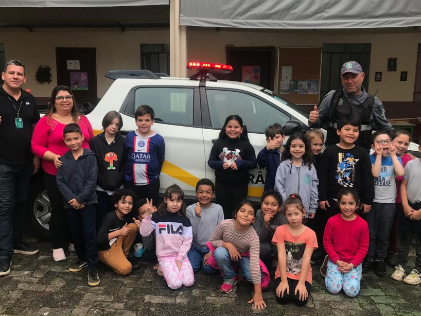 A Prefeitura de Gramado, meio da Secretaria de Trânsito e Mobilidade e Mobilidade Urbana realiza o os projetos Escolas mais Seguras e Gramado Zero Infrações com o objetivo de levar mais segurança e conscientização aos condutores e pedestres. Nesta quarta-feira (04), os agentes da pasta foram até a Escola Municipal de Ensino Fundamental Nossa Senhora de Fátima, na Vila do Sol, onde desenvolveram atividades com os alunos do Pré A e B e 1º ano A e B.