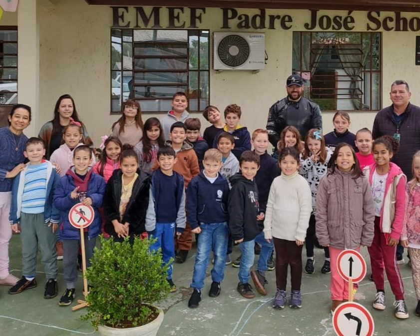 A Prefeitura de Gramado, por meio da Secretaria de Trânsito e Mobilidade Urbana, dando continuidade ao Projeto Escolas mais Seguras e Gramado Zero Infrações, esteve nesta quinta-feira (28), na Escola Padre Scholl, na Linha Carahá, para uma atividade de conscientização.