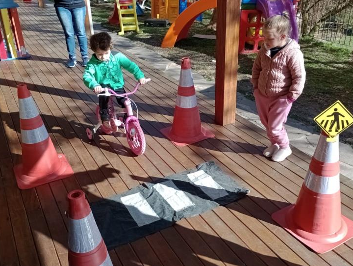 Também foi realizado um circuito de bicicleta, onde as crianças puderam aprender sobre a sinalização de trânsito e a utilização correta da faixa de segurança para pedestres de maneira prática. “Com esse tipo de ação, temos a convicção que os alunos vão entender melhor a importância de suas condutas para a melhoria da segurança no trânsito e no âmbito escolar. Isso beneficia toda a comunidade”, destaca o supervisor de trânsito, Jorge Nelson Scaglia.