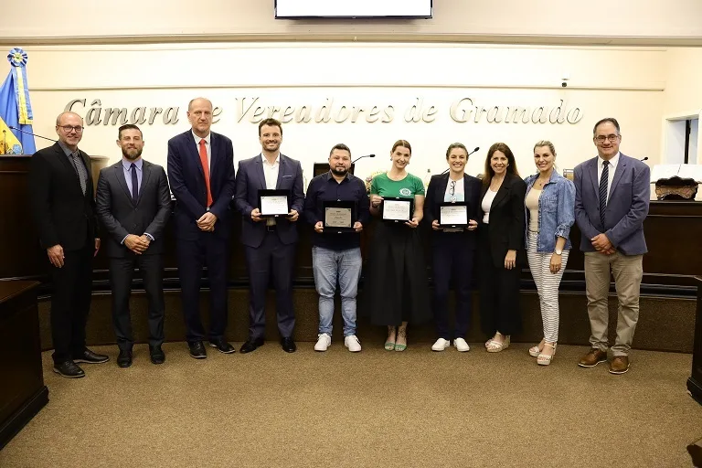 Na noite desta terça-feira, dia 10, a Câmara de Vereadores de Gramado promoveu uma sessão solene para a entrega de três Moções de Aplausos e uma Moção de Reconhecimento, no plenário Júlio Floriano Petersen. A cerimônia contou com transmissão ao vivo pelas redes sociais da Casa Legislativa.