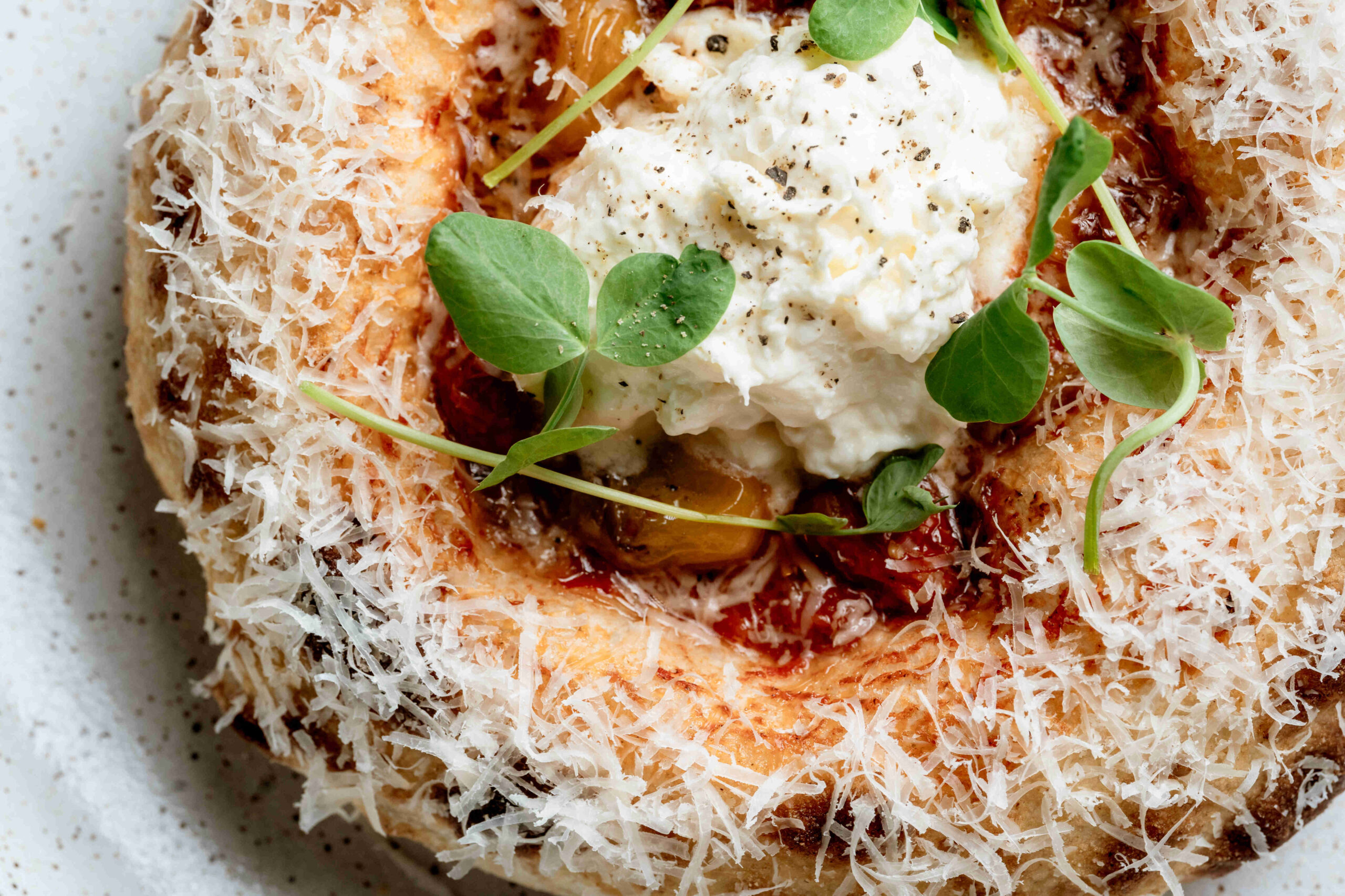O cardápio criado por Filipe Andrade destaca ingredientes de excelência, processos artesanais e preparações feitas em um forno a carvão (Josper), que conferem personalidade aos pratos. Entre as opções mais celebradas está a Polenta Croccante al Gran Formaggio, servida dourada e crocante, acompanhada de queijo Gran Formaggio e presunto Gran Nero finamente fatiado. O tradicional Katchapuri, elaborado com massa de pizza moldada à mão e recheado com creme de queijos, ganha finalização com gema de ovo caipira, reforçando o caráter artesanal do menu.