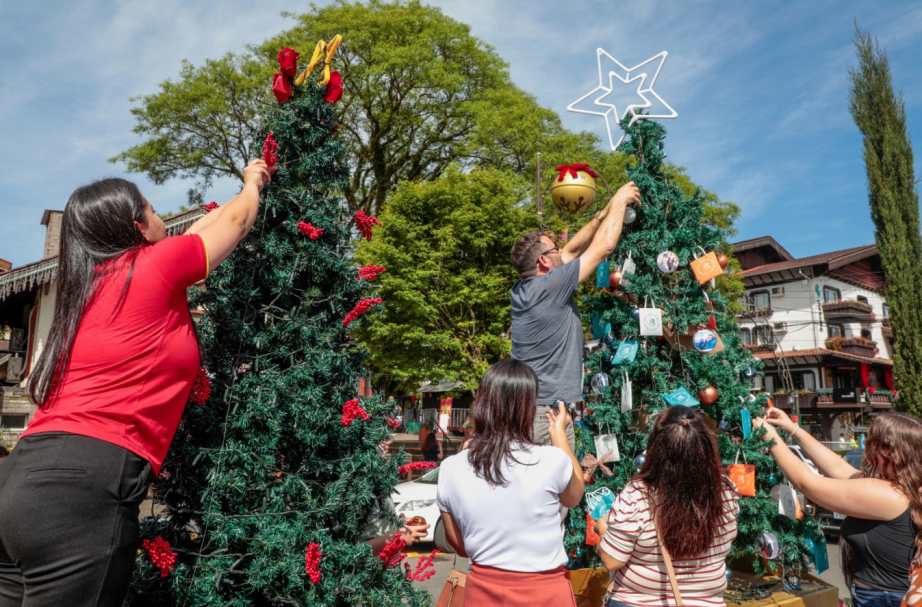 A decoração do 40° Natal Luz de Gramado, que segue até o dia 18 de janeiro, ganhou um toque ainda mais autêntico neste sábado (1º), com a realização do Tannenbaumfest. O evento reuniu a comunidade e empresas locais em uma festa de celebração e integração para enfeitar 34 pinheirinhos ao longo da Avenida Borges de Medeiros, que agora concorrem ao troféu Pinheiro de Cristal, confeccionado pela Cristais de Gramado. A tarde contou ainda com a animação da Trupe de Natal e do Coro Vozes de Gramado, que embalaram a festa com música e alegria.
