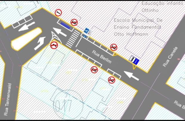 A Administração Municipal, através do Departamento de Trânsito da Secretaria de Planejamento, Coordenação, Trânsito e Habitação, comunica a alteração no fluxo viário da Rua Berlim, localizada no Bairro Pousada da Neve. A partir do dia 13 de abril, o trecho compreendido entre as Ruas Canela e Tannenwald passará a operar em sistema de mão única.