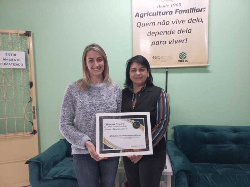 Leandra foi recebida pela Presidente do Sindicato dos Trabalhadores Rurais de Canela, Ana Carolina Benetti, e pela Extensionista da EMATER em Canela, Verônica Paludo.